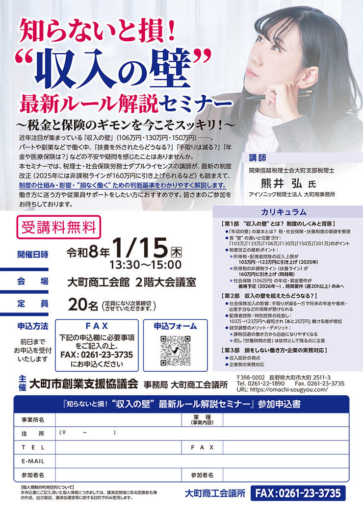 知らないと損!「収入の壁」最新ルール解説セミナー開催!